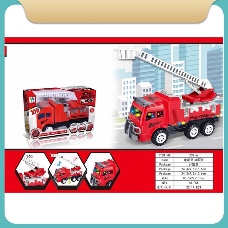 Xe cứu hỏa chạy pin tự động 4 chiều, có đèn và nhạc khi chơi cho bé: